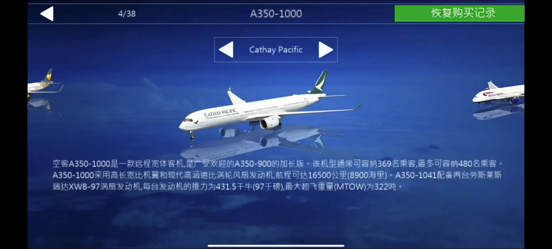 • 游戏下载完成,打开加速器进游戏飞机界面右上角,点击恢复购买(Restore Purchses)解锁所有飞机,然后一架一架下载即可,加速器我们不推荐,请自行寻找使用