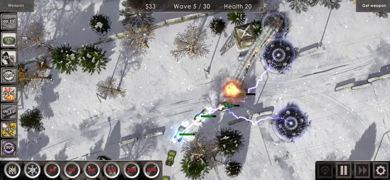 游戏强调策略性,玩家需要根据不同的敌人特点,选择合适的炮塔进行防御。例如,对于速度较快的敌人,可以使用减速类炮塔进行控制;对于装甲厚重的敌人,则需要高伤害的炮塔进行打击。此外,游戏中还提供了空袭等特殊技能,帮助玩家在关键时刻扭转战局。