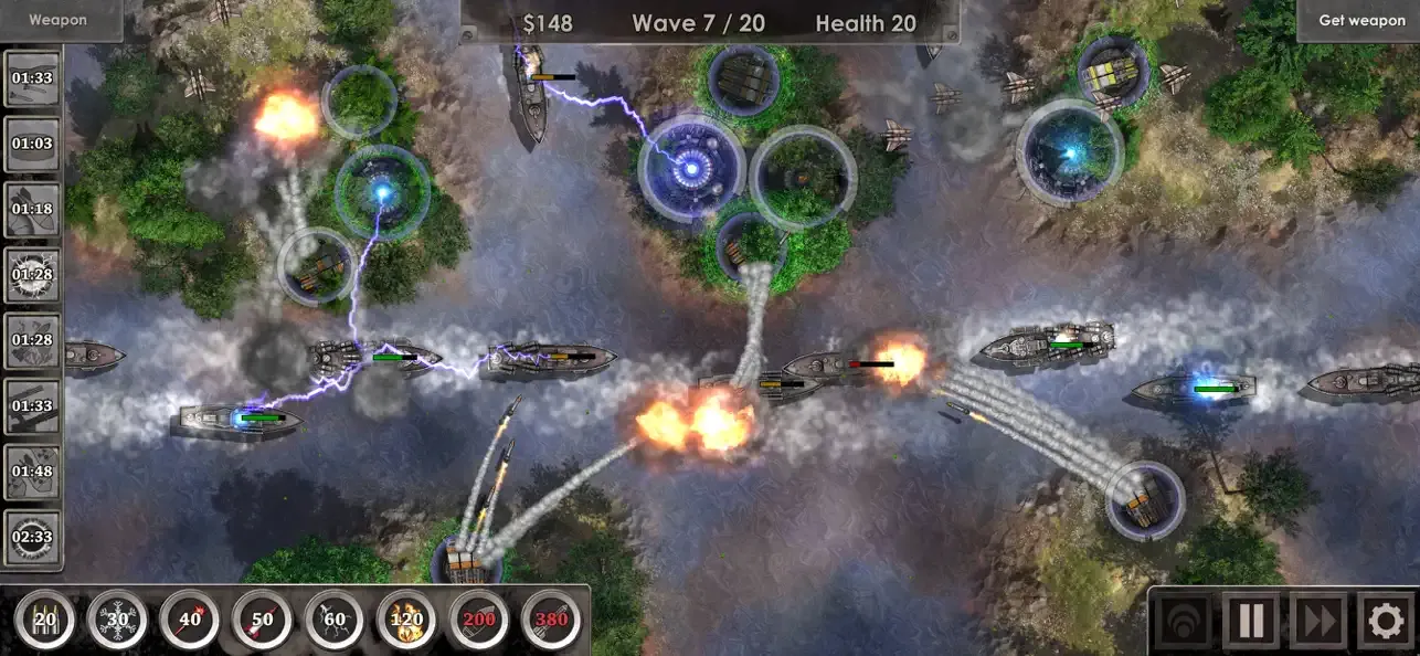 《Defense Zone HD》系列在画面表现上一直保持高水准,地图细节丰富,炮塔和敌人的设计也十分精致。音效方面,游戏配有紧张激烈的背景音乐和逼真的战斗音效,增强了游戏的沉浸感。